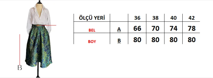 Yeşil çiçek desenleri, doğanın tazeliğini yansıtarak her mevsim için ideal bir seçenek oluşturur. Bu etek, şıklığı ve konforu bir arada arayan modern kadınlar için mükemmel bir tercih olup, dolabınızda vazgeçilmez bir parça haline gelecektir.